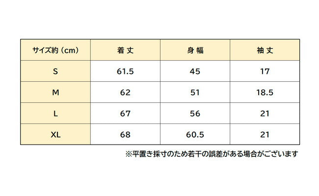 サイズ S:着丈約61.5 身幅約45 袖丈約17