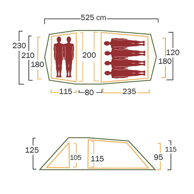 HELSPORTのPROシリーズ、TREKシリーズの難燃性素材とは違いシルナイロン素材を使用したPRO仕様のテントになっています。 シルナイロンの高耐久素材と軽さにより、6人用テントでありながら5.1kgという軽さを実現しました。 インナーテントも2種類ありシーンによって使い分けが可能になっています。 ●Tent タイプ:トンネル型 ●使用人数:4〜6人 ●収納サイズ:22×42cm ●テント重量:5.1kg(ペグも含む) ●付属品:ポール 330cm 1本+364cm 2本、ペグ 19本 収納袋 ポール:DAC Featherlight NSLTM 36cm セグメント アウターテント:HelsportRainguard Pro、3000mm インナーテント:Helsport Airflow Pro テントフロア:HelsportRainguard FR、5000mm |
