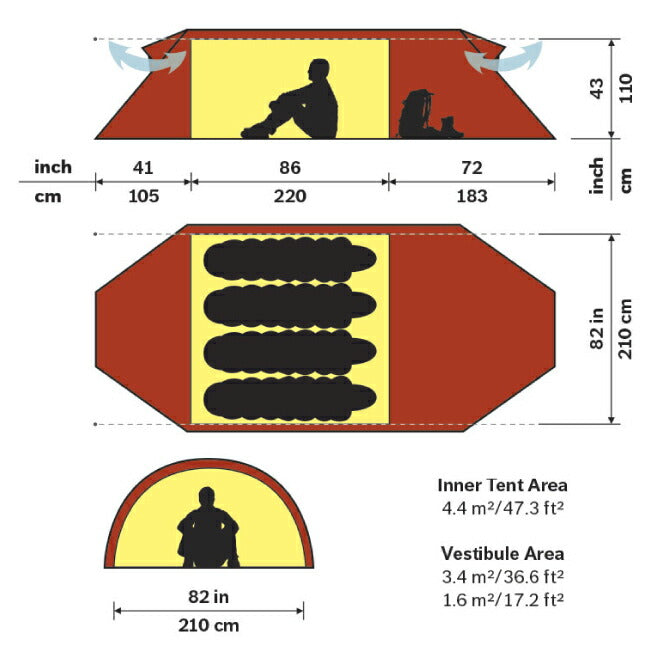 ※最小重量とは、アウターテント、インナーテント、ポールだけの重量です。総重量はその他スタッフバッグやペグ等を含めた総重量を指します。レッド