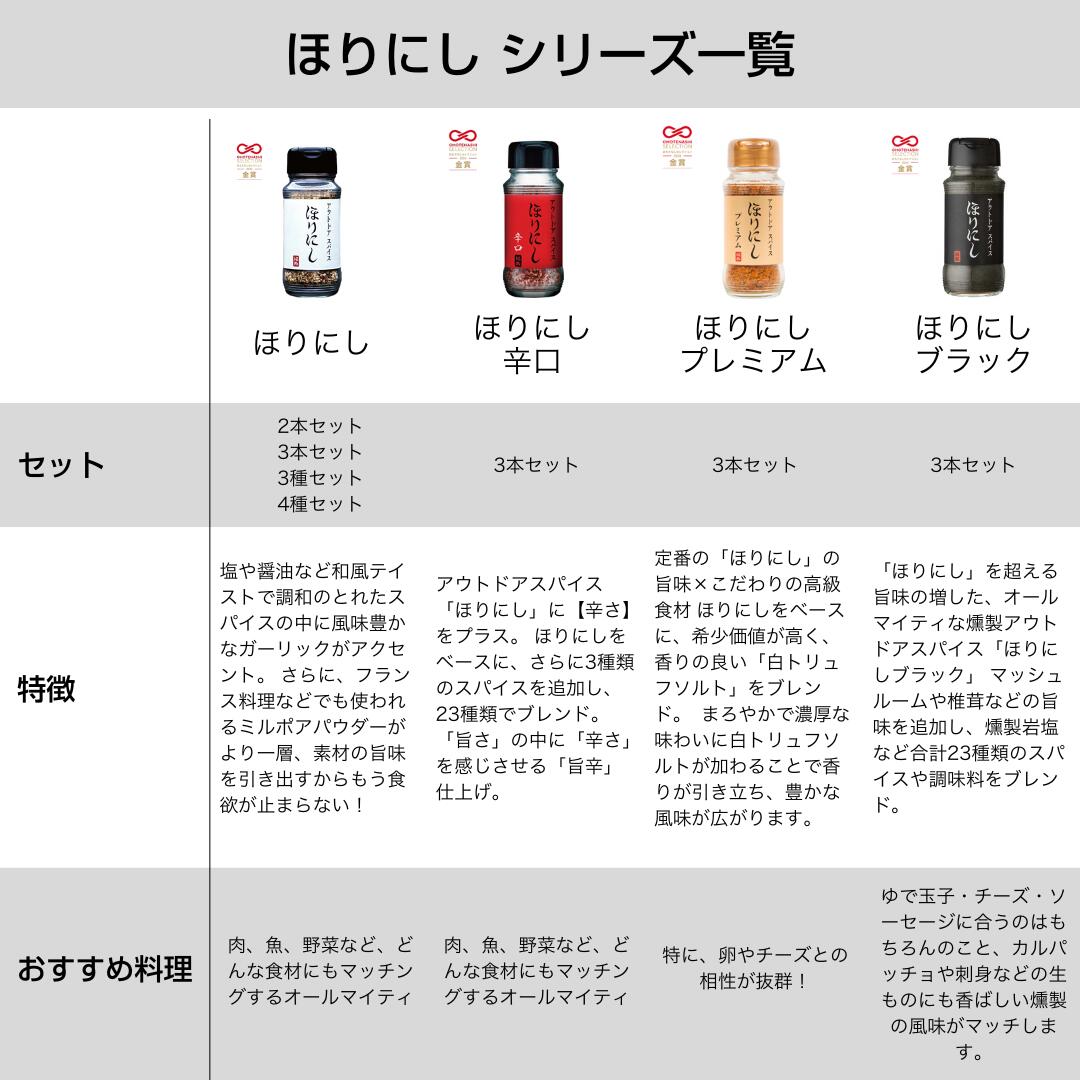 「アウトドアスパイス ほりにし」は、和歌山県の有名アウトドアショップ「アウトドアショップ Orange」が2019年4月に発売し、「アウトドアスパイス ほりにし」という名称がついた初の万能調味料です。