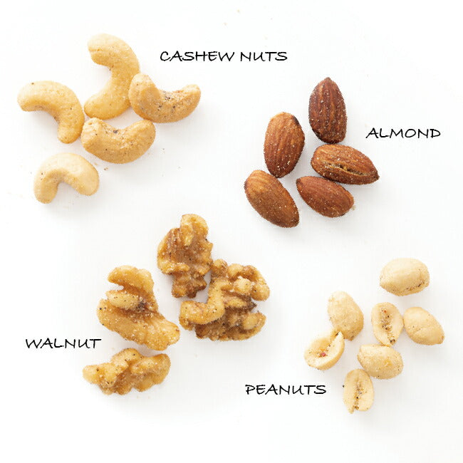 アウトドアスパイス ほりにし×4種類のミックスナッツ 【セット内容】 アウトドアスパイス ほりにし ミックスナッツ1個 「アウトドアスパイス ほりにし」1本 ★アウトドアスパイス ほりにし ミックスナッツ★ 【原材料名】 クルミ加工品(クルミ(アメリカ)、スパイス調味料、植物油)、ピーナッツ加工品(ピーナッツ、植物油、スパイス調味料、食塩)、カシューナッツ加工品(カシューナッツ、スパイス調味料、植物油)、アーモンド加工品(アーモンド、スパイス調味料、植物油)/調味料(アミノ酸等)、リン酸Ca、(一部にクルミ・小麦・落花生・アーモンド・カシューナッツ・大豆・鶏肉・豚肉を含む) 【内容量】 100g 【栄養成分表示(100g当り・推定値)】 エネルギー:643kcal たんぱく質:18.7g 脂質:56.2g 炭水化物:19.1g 糖質:12.1g 食物繊維:7.0g 食塩相当量:1.5g 【賞味期限】 別途商品ラベルに記載 【保存方法】 直射日光、高温多湿を避けて保存してください。 ナッツは暑さに弱い特性を持っています。 酸化を防ぐためにできるだけ涼しいところで保存してください。 ●お子様が召し上がる際は、のどに詰まらせないようご注意ください。 ●当製造工場では、えび、かに、卵、乳成分、いか、オレンジ、キウイフルーツ、牛肉、ごま、さけ、さば、ゼラチン、バナナ、もも、やまいも、りんごを含む製品を製造しております。 ●開封後はしっかりとチャックを閉め、賞味期限にかかわらずお早めにお召し上がりください。 ●まれにナッツの殻が混入していることがありますのでご注意ください。 ●本製品は農産物のため、色や形・硬さにばらつきがあります。 ●まれに虫食いの実が混入していることがあります。 ●ミックス品のため内容にばらつきが出る場合がございます。 ---------------------------------------------------------------- ★アウトドアスパイス「ほりにし」★ 【原材料名】 食塩(国内製造、アメリカ製造、ドイツ製造)、ガーリック、黒コショウ、粉末醤油、赤唐辛子、レッドベルペパー、陳皮、コリアンダー、ミルポアパウダー、植物油脂、チキン調味料、パセリ、パプリカ、オニオン、ジンジャー、バジル、オレガノ、マジョラム、ローズマリー、ローレル、セロリーシード/調味料(アミノ酸等)、リン酸Ca、(一部に小麦、大豆、鶏肉、豚肉を含む) 【内容量】 100g 【栄養成分表示(100g当り・推定値)】 熱量:206kcal たんぱく質:12.8g 脂質:2.8g 炭水化物:32.4g 食塩相当量:46.3g 【賞味期限】 別途商品ラベルに記載 【保存方法】 直射日光、高温多湿を避けて保存してください。 光や日光に長時間当てていると変色の原因となります。(品質には問題ありません) 保管時はなるべく高温多湿を避け、温度差が少なく風通しの良い冷暗所での保管を推奨いたします。 ※消費期限がある商品は返品不可とさせていただきます。予めご了承ください。 |