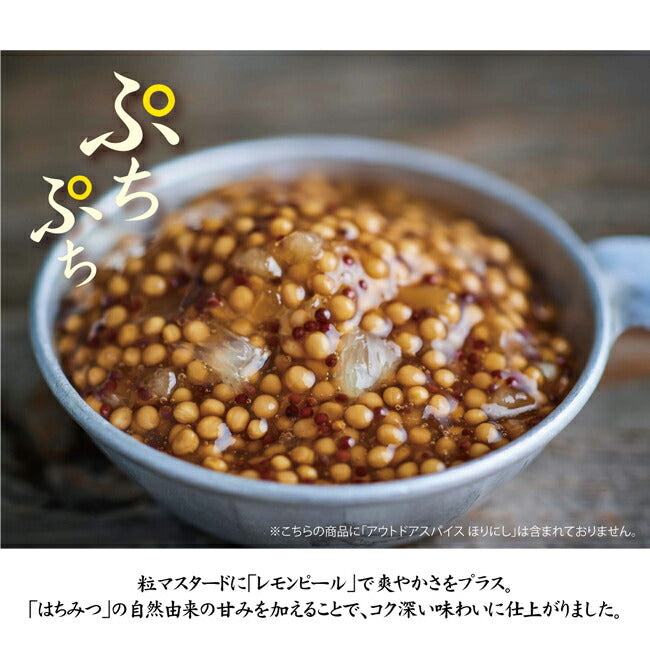 ※セット内容 ほりにし監修 ぷちぷちレモンマスタード×3本 大人からお子様まで食べていただける「粒マスタード!」 どんな料理にも合うように、お酢の酸っぱい香りと味を極力抑え、酸味の中に「はちみつ」の甘さとレモンの爽やかをプラス。 「チューブタイプ」なので、そのまま料理に掛けていただくだけ! スプーンなどカトラリーの洗い物を増やさず、衛生的に使っていただけます。 ※「ほりにし監修 ぷちぷちレモンマスタード」には「アウトドアスパイス ほりにし」は入っておりません。 お間違えのないようお願いいたします。 【内容量】 160g 【原材料】 マスタード(カナダ、日本)、はちみつ、レモン砂糖漬け(レモンピール、砂糖、水あめ、ブランデー)、醸造酢、凝縮レモン果汁、食塩 / 酸味料、酒精、香料(一部にりんごを含む) 【保存方法】 直射日光、高温多湿を避け、涼しいところで保存してください 【賞味期限】 未開封の状態で直射日光を避け、常温にて保存し、製造より12ヶ月。 ※本製品にははちみつが含まれております。1歳未満の乳児に与えるのは避けてください。 ※食品のため返品不可とさせていただきます。予めご了承ください。 |