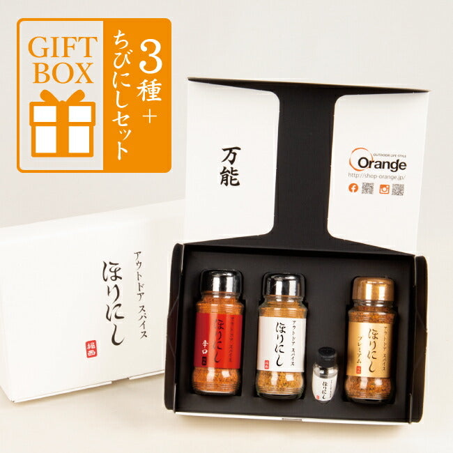 商品名 | アウトドアスパイス ほりにし 白+赤+金 3本セット+ちびにし (ギフトボックス) |