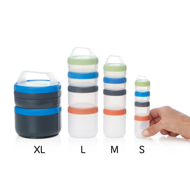 ゴーバイトCLICKがセットになった、重ねて固定できるコンテナのセットです。 コンテナ同士は90度ひねるだけで付け外し可能で、コンテナのフタは半回転(180度)ですばやく開閉できます。 フタにはパッキン内蔵で液漏れもありません。 付け外し可能なループ付きです。 仕様 重量 390g 容量 200ml×1 / 400ml×1 / 700ml×1 |