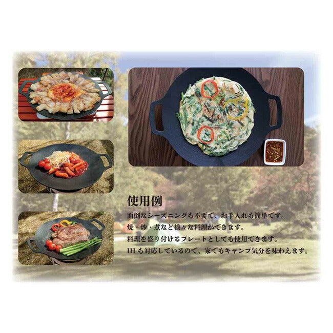 ・錆・傷に強く、耐摩耗性にすぐれた高級硬質特殊フッ素樹脂加工「イノーブルコーティング」を使用しています。 ・シーズニング不要です。 ・わずか約1kgと軽量で持ち運びが簡単です。 ・熱伝導にすぐれ、弱火でもおいしい料理を作ることができます。 ・ガスコンロ、IHに対応しています。 ・調理後、そのまま食卓にプレートとして並べることもできます。 ・調理道具としても、料理を一層華やかにするプレートとしても高級感を引き出せます。 【重量】 約1kg 【材質】 アルミニウム合金 【コーティング】 イノーブルコーティング 【熱源】 ガス、IH、直火 【セット内容】 本体、シリコンミトン |