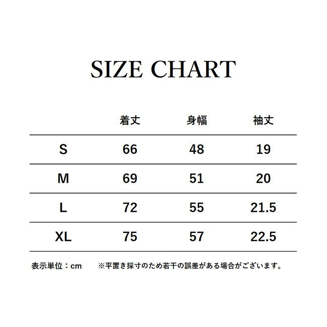 サイズ S:着丈約66cm 身幅約48cm 袖丈約19cm
