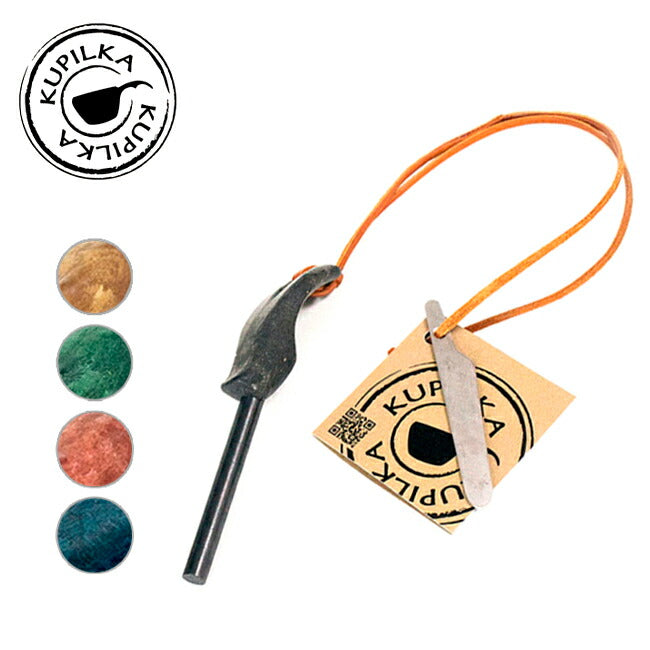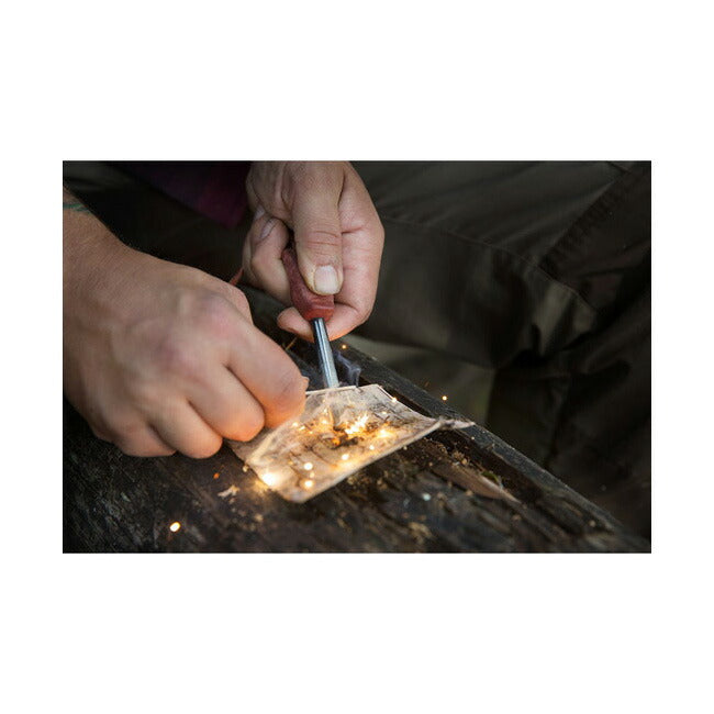 約3,000度の火花を飛ばすことができるフィロセリウム製ロッドのファイヤースターターです。ロッド径が太いため長く使うことができます。オリジナル樹脂ハンドルにトナカイ革のストラップがつき、手になじみやすいデザインです。