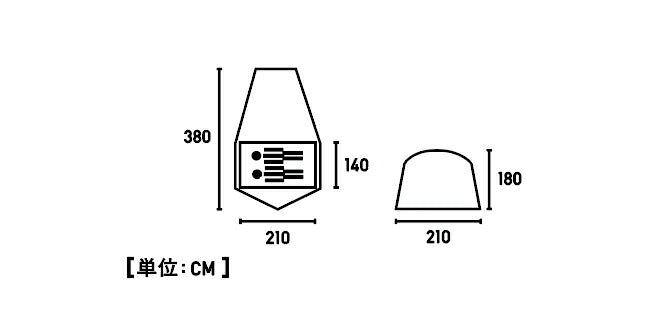 サイズ | サイズ:(約)幅210×奥行380×高さ180cm インナーサイズ:(約)幅210×奥行140×高さ160cm 収納サイズ:(約)幅60×奥行24×高さ24cm ※メーカーサイズ参照 |