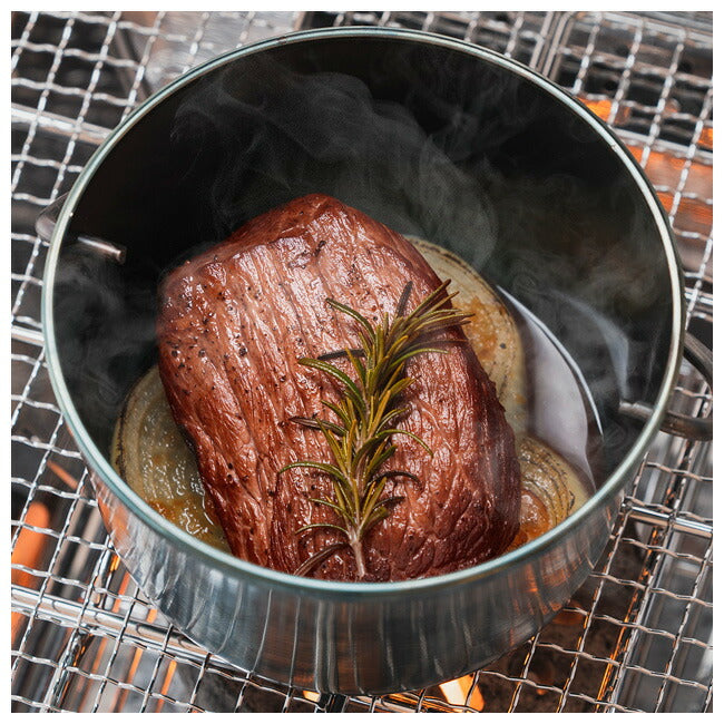 フタが自立する独自デザイン! こだわりのヘラ絞り加工でおいしく調理できるダッチオーブン。 こだわりのヘラ絞り加工でつくられた日本製のLOGOS 鉄の職人シリーズ。 使いやすい小型のダッチオーブンで、おいしく調理が可能です。 IH対応 ※底面の面積が狭いためIHの機種によっては反応せず使用できない場合があります。 総重量:(約)1.8kg 容量:(約)1.2L 主素材:スチール ●分厚い鉄をヘラで絞りながら形作るヘラ絞り加工品 ●蓄熱性の高い分厚い鉄でありながら軽量化を実現 ●高火力調理が可能なため、食材を美味しく調理できます ●少人数にちょうど良いコンパクトなサイズ ●特別な蓋は、躊躇なくテーブルに置けるセルフスタンドスタイル |