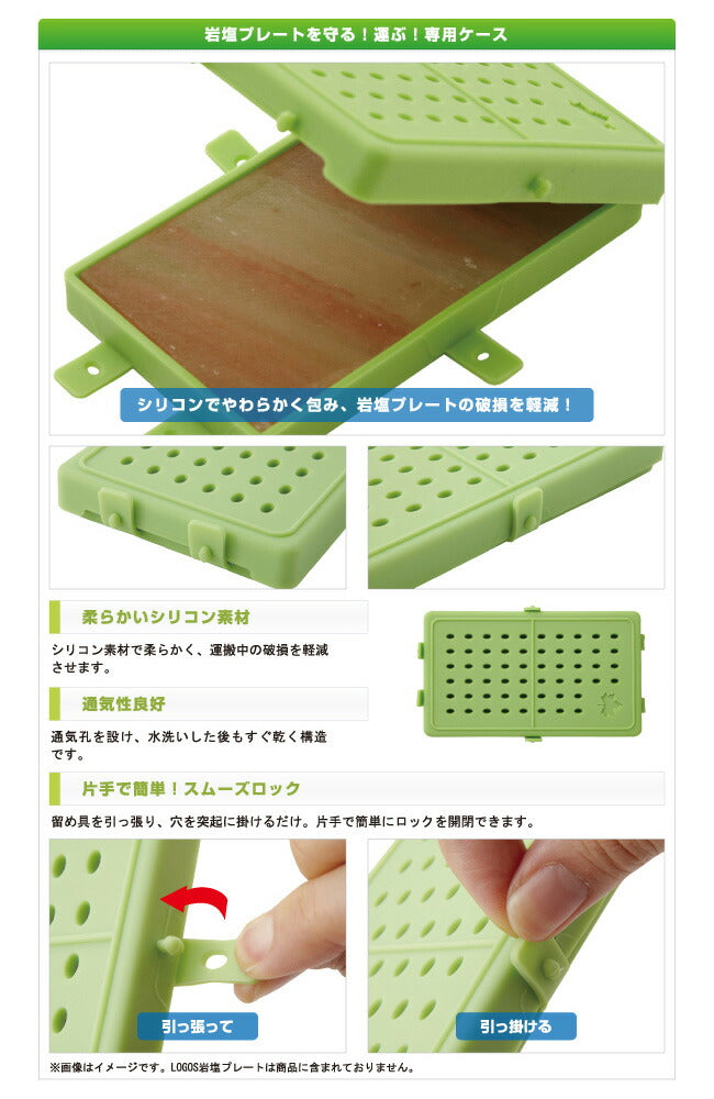 ●岩塩プレートを守る!運ぶ! ●シリコン製の本体が岩塩プレートの破損を軽減します ●安全なシリコン素材を使用し、岩塩プレート全体を包み込みます 主素材:シリコン ※製品は予告なく仕様を変更する場合があります。 |