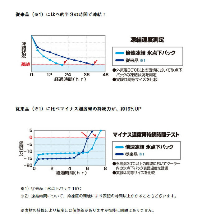 従来の氷点下パック-16℃の約半分の時間で凍結完了!