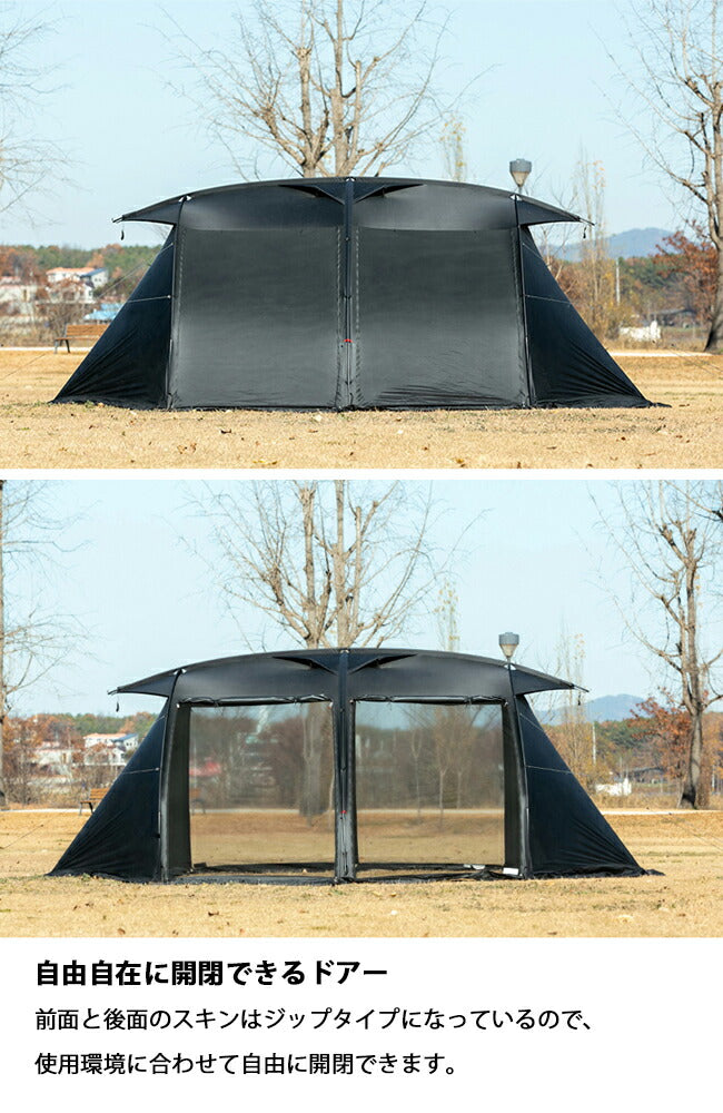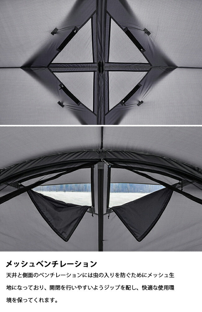 ビニルハウスの形からインスピレーションを受けたV HOUSE Mは、ユーザーの環境や使用用途によって多彩に適応が可能なコンパクトサイズのシェルターです。 商品の付属品やパーツ等は一部デザインやカラー変更・仕様変更となる場合がございます。 予めご了承くださいませ。 素材:Nylon40D Water Proof 3,000mm, Aluminium 構成:テントスキン1, 側面ドアーベスティブルタイプ1セット(三角2枚) / ストレートタイプ1セット(平2枚), ポール4, ストリング4, ペグ12, 収納バッグ1 |