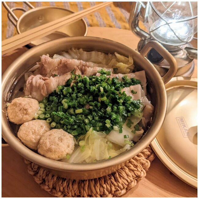 ミカンオリジナルの「しゅう酸 両手鍋」ができました! 耐食性の高いしゅう酸アルマイト加工が施されているので腐食や錆に強く、熱伝導が良いので素早い調理が可能。 強い焚き火でも使っていただけるようハンドルはアルミ仕様に。 ※炎が底面より大きくならないようにしてください。 しゅう酸鍋というと大きめで、家庭用のイメージがありますが、 小さめなので、ソロキャンプやデュオキャンプでも手軽に使っていただけるサイズ感です。 共蓋でつまみ部分は木製、MIKANのロゴも入っています。 ※こちらの商品は電磁調理器(IHクッキングヒーター)ではご使用になれません。予めご了承ください。 |
