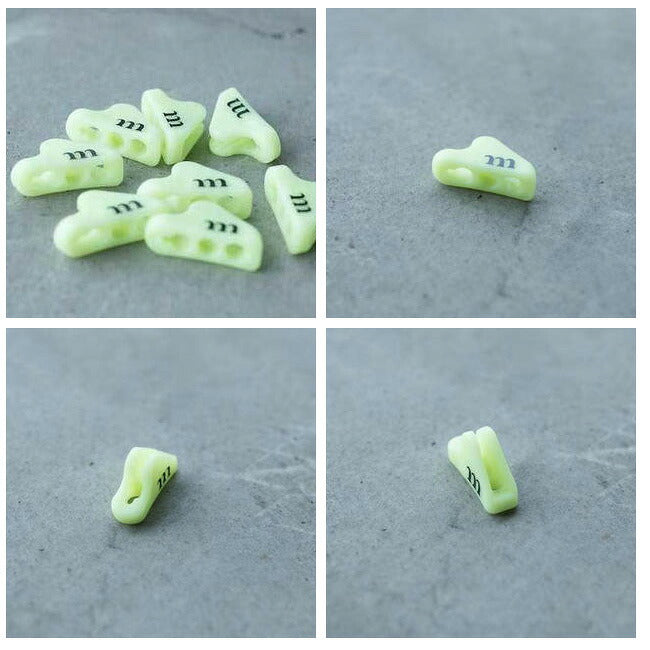 直径1.5mmから3.5mm程度のロープに使用可能な、樹脂製ロープテンショナーにmロゴをデザインしました。昼間、光を蓄えて、夜間に発行する、グローインダークモデル。高い操作性と軽さが特徴です。muracoのロープラインナップではIRON CORD、REFLECTIVE CORDに対応します。DARWIN’S BARKには対応いたしませんので、ご注意ください。