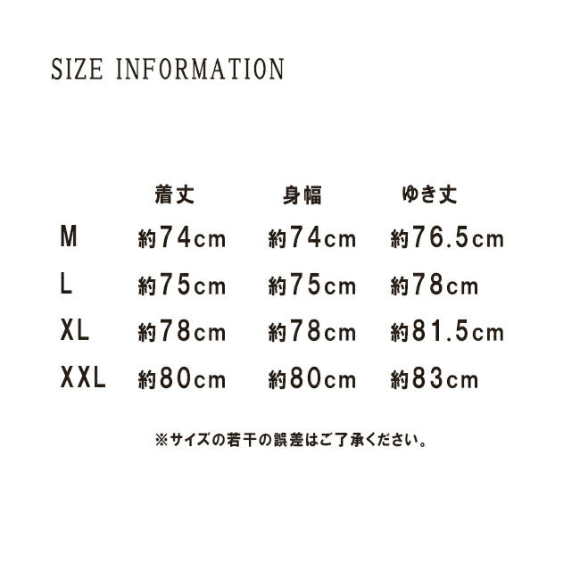 XXL:着丈約80 身幅約61.5 裄丈約83