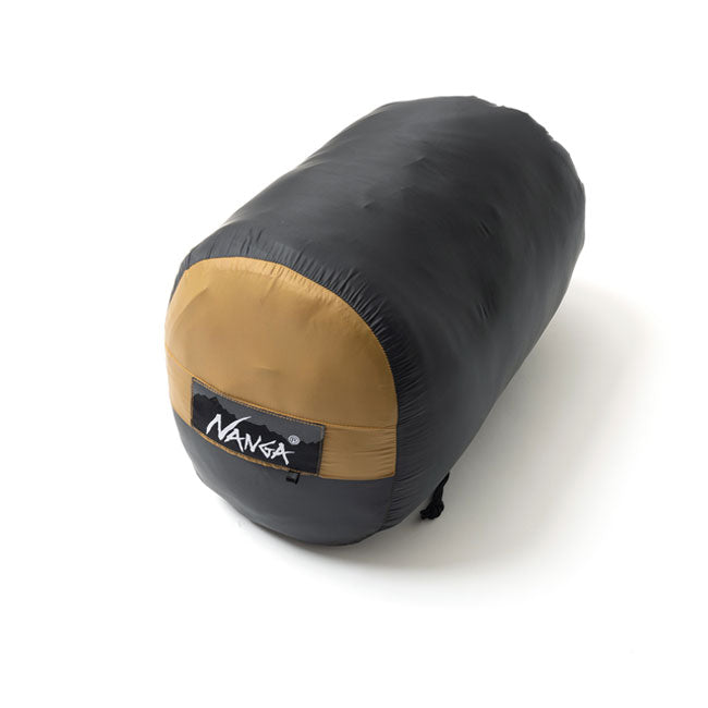 NANGAのスリーピングバッグ。 【素材】 表地:ナイロン100% 裏地:ナイロン100% 中綿:ポリエステル100% 【重量】 総重量:約980g |