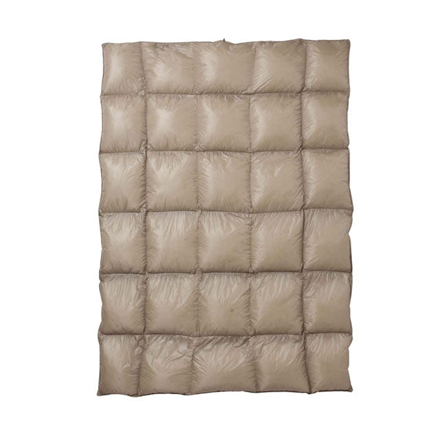 この掛け布団はナンガのラインナップでも最軽量で、ダウンジャケットや寝袋に使用される10dnという極薄のリップストップナイロンを採用。