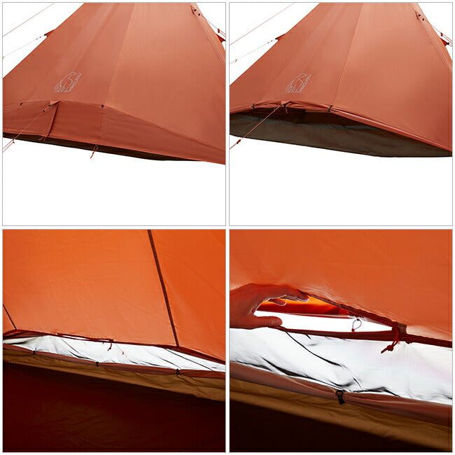 ティピー型の5人用テントです。 重量 : 8.9 kg フライシート 構成 : 100% ポリエステル 構造 : リップストップ カラー : Picante/Cashew 静水圧 : 3000 mm インナーテント 名前 : 高通気性ポリエステル 構成 : 100% ポリエステル 構造 : シームレスメッシュ グランドシート 静水圧 : 8000 mm 構成 : 100% ポリエステル カラー : Black コーティング : PUコーテイング |