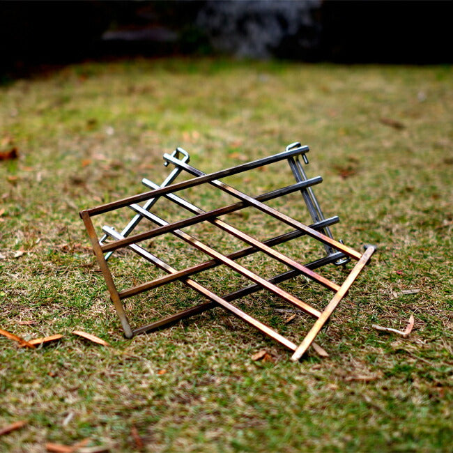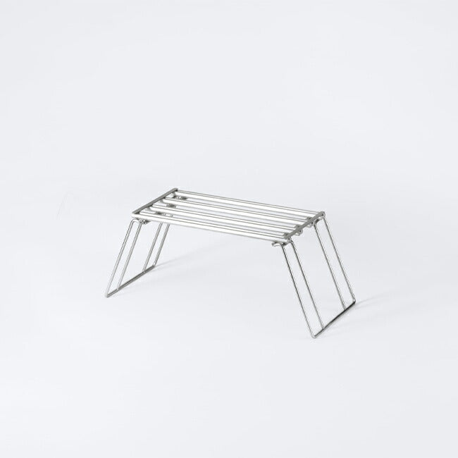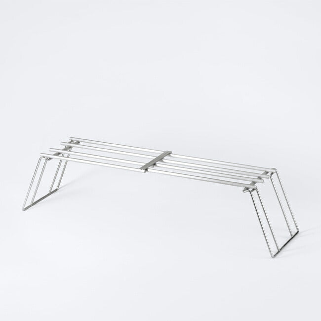 CB缶のシングルバーナー調理などに。 高さ15cmのフット付きゴトク。 高さ15cmの自立式ゴトクは、CB缶タイプなど、高さ10cm〜16cmのシングルバーナー調理に程よいサイズ。 さらに耐熱テーブルとして、火にかけたばかりの鍋を置けるほか、最大58cmまで伸びるスライドを調節すれば、あらゆる焚火台にフィット。 さまざまな使い方に応える万能ギアです。 【耐荷重】 15kg 【材質】 本体・脚部:ステンレス(SUS304) 収納袋:綿 ロゴステッカー:強光沢紙(耐水) 【重量】 1.5kg |
