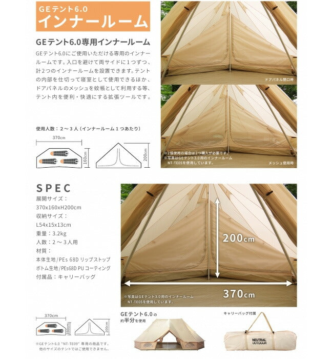 NEUTRAL OUTDOOR ニュートラルアウトドア NT-TE09 GEテント 6.0 インナールーム 34085