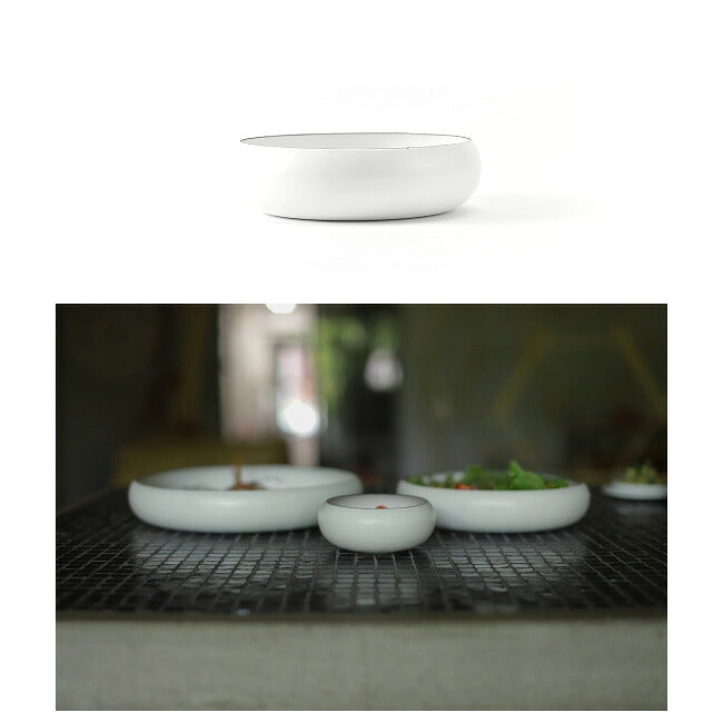 柔らかな質感と洗練された薄いフチのほうろうボウル ほうろうの柔らかな質感と金属の強さを活かした洗練された薄いフチのovjectほうろうボウル。ほうろう製品は量産性を考慮し、通常吊り下げて焼きあげる事が多くフチをカール巻きにする事が多いが、ovjectのほうろうボウルは、職人がひとつひとつ丁寧にほうろう加工を行い洗練された薄いフチを実現しました。0.8mm厚の鋼板を釉薬でコーティングした金属の強さと焼き物の質感を合わせもつ器は、日常使いだけでなくアウトドアでも使用でき、炭火や直火での温め直しやオーブン料理も可能です。用途に合わせ選べる幅広いサイズ展開で、ジャンルを選ばず様々な料理の器として使用できます。また同サイズのovjectのリムプレートを簡易蓋として使う事ができるのも特徴。その他、植物を活ける為の器としてなど、日常の様々なシーンで柔軟に使える器です。 ・陶磁器のような豊かな質感と金属の強さを生かした洗練された薄いフチの器 ・直火やオーブンでの温めなおしも可能でインドアでもアウトドアでも使える ・料理のジャンルを選ばず盛り付けできるシンプルな佇まいと幅広いサイズ展開 ・割れる事がなく永く使える ・ovjectのほうろうリムプレートを簡易蓋として組み合わせて使える ガスコンロ ○ / 電子レンジ × / 食洗機 × / オーブン ○ / IH ○ |