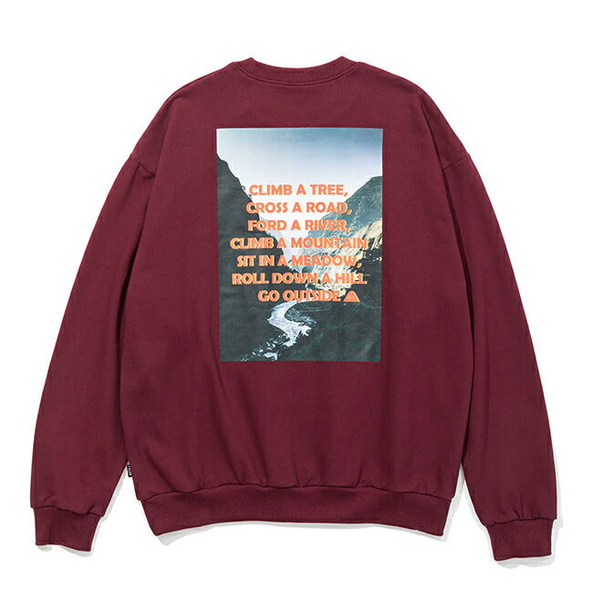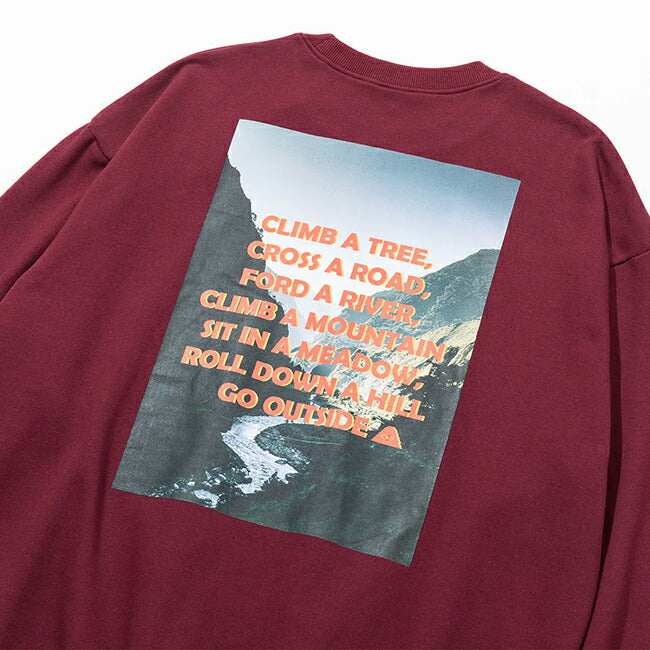 雄大な自然を切り取ったフォトの上に象徴的なメッセージを落とし込んだフレンチテリーボディのクルースウェット。