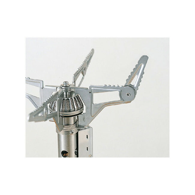携帯性が良くコンパクトで軽量なボディでありながら、3600kcal/hと圧倒的なパワーを持っています。 安定性の高い四本ゴトク、垂直に配置した点火装置により全体的にスマートなデザインです。 ハイパワー、コンパクト、軽量と三拍子揃ったウルトラバーナーは、ハイキングから高所登山まで幅広く活躍します。 出力:4.2kW/3,600kcal/h(T型ガス使用時) ガス消費量:245g/h 燃焼時間:約55分(IP-250タイプガス使用時) ゴトク径:大148mm/小90mm 本体重量:116g □ ナイロンスタッフバッグ付属 □ ガスカートリッジ別売 |