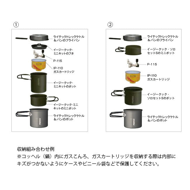 PRIMUS/プリムス/ライテックトレックケトル&パン1.0L鍋(内径11cm×高さ10cm)、 フライパン(内径11cm×高さ2.7cm) 基準重量:280g 収納サイズ:φ13×H14.5cmコッヘルとはドイツ語で加熱用調理器具のことです。アルミでできたコッヘルは熱伝導率が高くアウトドア用として優れています。表面の耐食性を上げるための陽極処理をハードアノダイズド加工と呼びます。 ■ メッシュ収納袋付属 ■ ハードアノダイズド加工済みアルミ製、内側ノンスティック加工済み ■ 底面滑り止め加工済み |