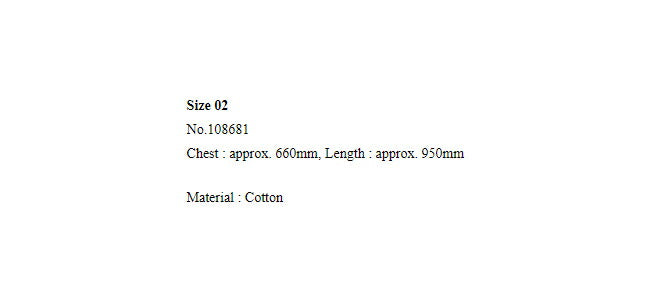サイズ | 胸囲:約660mm 長さ:約950mm ※メーカーサイズ参照 |