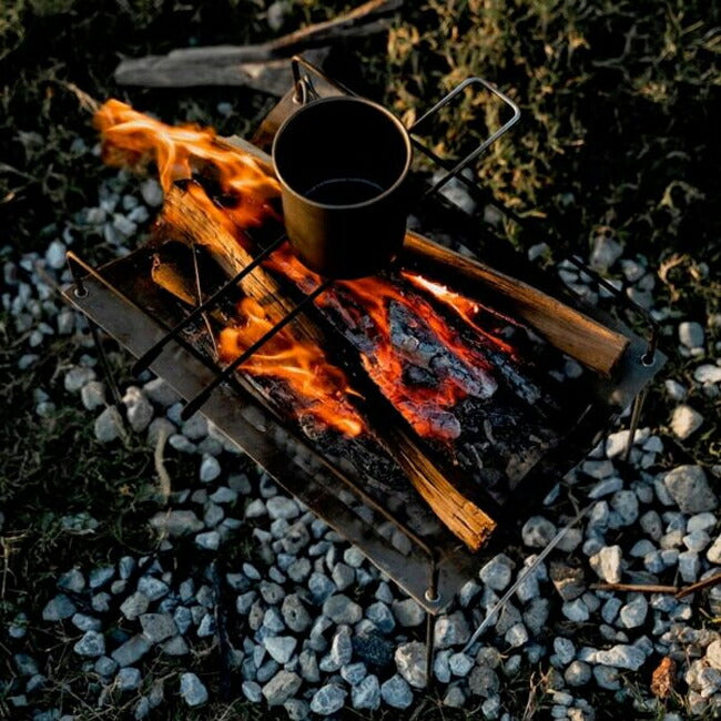 DESIGNER'S VOICE 「キャンプは目的じゃなく手段だ」以前はそれを強く思っていました。 しかしこのコロナ禍で「ああ、キャンプだけでもいい、キャンプしたい!焚き火したい!」という思いが募り、今回のFirestand SOLOの開発に着手しました。 これまでのNINJA Firestandはユニークでシンプルで大好きな製品ですが、じつは調理だけは苦手でした。 そこで「軽量コンパクト」というコンセプトはそのままに調理のしやすい安定感のあるデザインを目指し、現モデルの改造を始めました。 最初の試作はボトムブリッジを追加すること。 これにより安定性が格段に向上しました。そしてトップブリッジをクロスタイプから並行タイプに変更することで調理をしやすくしました。正方形の火床は長方形に変更し、焚き火もしやすくなりました。 というと簡単なのですが、今回の試作&テストはなかなか壮絶でした。 昼間はスタジオで試作をして、夜はキャンプ場で焚き火テスト。翌朝は焚き火くさいまま出社して、また試作。そしてまたキャンプ場へ。 家族には「パパ、今日はどこに寝るの?」と聞かれ、スタッフには「風呂だけは入ってください」と言われ、「遊びじゃない、これは仕事だ!」と言いながらキャンプ場から出社すること数ヶ月。 多くの薪とビールを費やして、ついに満足いくデザインに辿り着きました。文句なく、焚き火も調理もしやすいNINJA Firestand SOLOの誕生です。 付属のトングや火吹き棒も最高の自信作です。 結局のところ「キャンプ目的の開発」と言われても仕方ないです。こんな楽しい仕事をしていてごめんなさい。 Pack and Go ! 【重量】400g 【素材】ステンレス 【付属品】収納ケース、火吹き棒、五徳 |