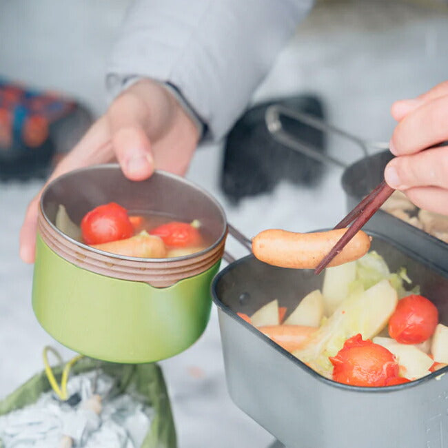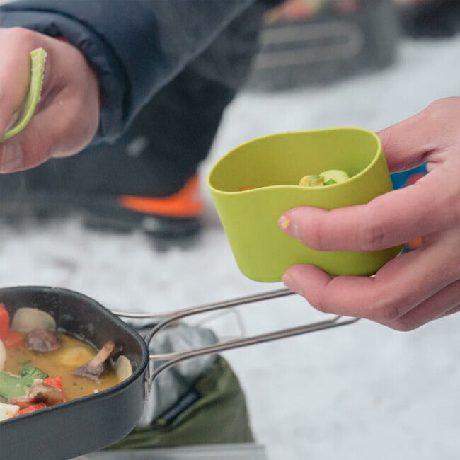 トレイルポットに専用設計のインナーカップのセットが登場。 トレイルポットユーザーはもとより、多くのハイカーに使ってもらえるようにデザインしました。 トレイルカップは、角型深底デザインのクッカー「トレイルポット」専用のインナーカップとして設計しました。 ぴったり隙間なく収まるので、移動中も中身が揺れたり音が鳴ったりしません。 またクッカーと一緒に使う、ガスカートリッジとバーナーヘッドを収納可能です。 プラカップ(丸)、プラカップ(まめ)とチタンカップ(丸)の3点セットです。 トレイルカップ500はトレイルポットS1200に入れることができます。 【重量】 170g 【満水容量】 丸型プラカップ:580ml まめ型プラカップ:270ml 丸型チタンカップ:630ml 【素材】 プラカップ:飽和コポリエステル シリコンリング:難燃シリコン チタンカップ:チタン |