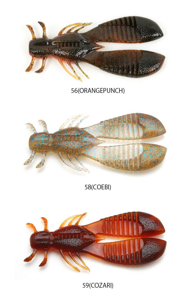様々なタイプのワームが存在する世の中において、「圧倒的に強く激しく水を叩けるチャンク系ワームが欲しい!」という想いから生まれたのがEGU CHUNK(エグチャンク)。 EGU CHUNKの着想は、ラバージグやフットボールヘッド等に装着したソフトベイトを、ラインスラックを弾きながら中層スイミングさせるジグストやミノストと言われる釣法から生まれました。 この釣りをやり込めばやり込む程に、このメソッドは我々の想像よりはるかに深く・遠くから魚を呼んで来ている事が判明。更に言うと、遠くから呼び寄せた魚ほどバイトに至る可能性が高いということも判明しました。 もっと効率的に強く水を叩けるワームがあれば更に広範囲から魚を呼べるのでは?と試行錯誤した末に行きついたのがチャンク形状。 今までに類を見ないほど分厚く重い爪が生む強烈なパンチを、しなやかで幅広いアームが逃さず受け止め団扇のごとく天地左右遠くまで水を弾き飛ばす。 それにより生み出される強波動は従来のワームを遥かに超える集魚力を発揮。 しかし、ただそれだけでは使いどころの限られた扱い難い物になってしまうため、軽いアクションでも敏感に動くサイドレッグ各種や、アクションの余韻を生む浮力と甲殻類ライクな微波動を生む腹部の薄板リブなど随所にギミックパーツを盛り込む事でフォールやズル引き、スイミングやステイに至るまでいついかなる時もバスを誘い続け、緩急の効いたアクション変化でバイトトリガーにスイッチを入れるワームに仕上げています。 またリグにおいてもその汎用性は広く、テキサスリグやリーダーレスダウンショット、フリーリグにヘビーキャロライナーリグなど様々なリグと高相性。 勿論、ジグトレーラーとしての能力は言うまでもありません。 エグチャンクは驚異の集魚力と喰わせを両立した上で、高い汎用性をも融合することに成功したチャンク系ワームの究極進化系と言えるでしょう。 |