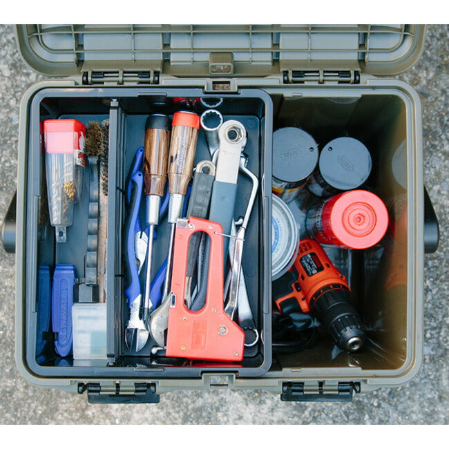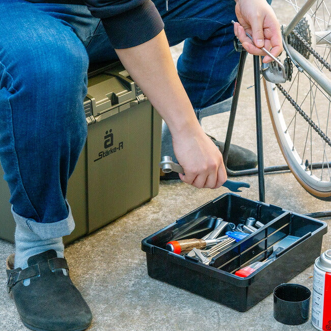 リングスターが手掛けるアウトドアブランド“Starke-R” 素材には自動車バンパー素材を使用し、従来の製品より耐久性が格段に向上。 前後、どちらからでも開閉可能。 耐荷重は測定不可能!? 椅子や踏み台としても活躍し、27Lの容量はアウトドアライフをしっかりとサポートします。 ハンドル部分には姫路レザーを採用し、使うほどに柔らかく馴染んできます。 |