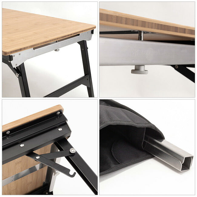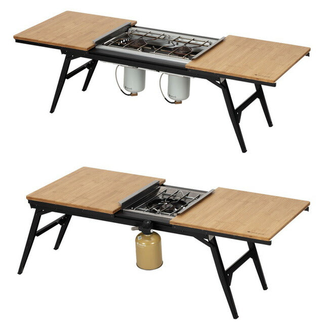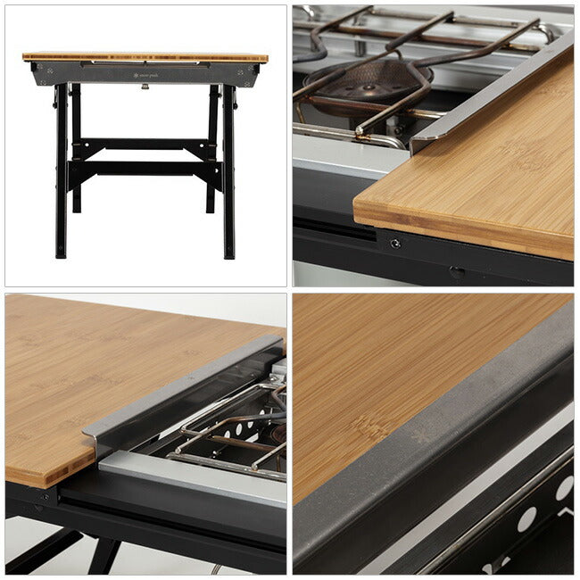 天板を左右にスライドさせるとIGTフレームが出現し、IGTユニット製品を設置することができます。 本製品一つで調理と食事のスペースを同時に設えることができる「エクステンションIGT」。 キャンプでは、快適性を求めるほど多くのテーブルが必要となり、テーブルの数が増えるほど準備・撤収・車への積載時の負担が増えてしまいます。 調理と食事のスペースを同時につくれる機能的で程よいサイズのテーブルがあれば、荷物を減らしながら快適なキャンプができると企画されたアイテムです。 スノーピークのIGTユニットサイズの製品がフレーム部に組み込んで使用していただくことができます。 基本ユニットサイズは1ユニット、2ユニットの設定です。 片側の天板をスライドさせると中央に1ユニットサイズのIGTレールが出現し、左右両方の天板をスライドさせると2ユニットはめ込むことができます。 様々なユニットを選択し、組み合わせることが可能です。 ※CK-116TR(マルチファンクションテーブル竹)やCK-153TR(スライドトップハーフ竹)等のIGTフレームの外側に追加するオプションを取り付けることはできません。 ※炭火を利用するBBQボックスを組み込む事はできません。火の粉や爆ぜた炭によって天板が焦げる原因となる可能性がございます。 材質:天板/竹集成材、スタンド/アルミニウム合金、ステンレス鋼、スチール、樹脂 重量:11kg セット内容:本体、天板保護パーツ×2、収納ケース、取扱説明書 |