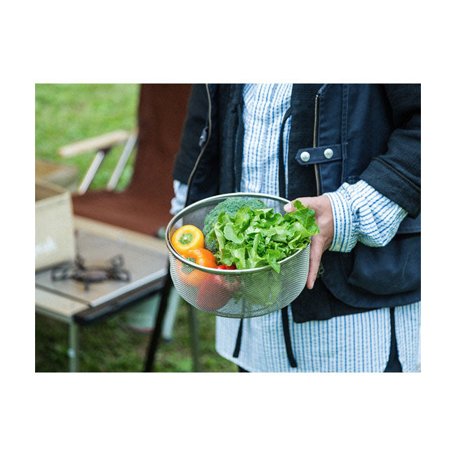 200、180の2サイズのビリーポットと、野菜の水切りなどに便利なメッシュバスケット、フライパンのセット。