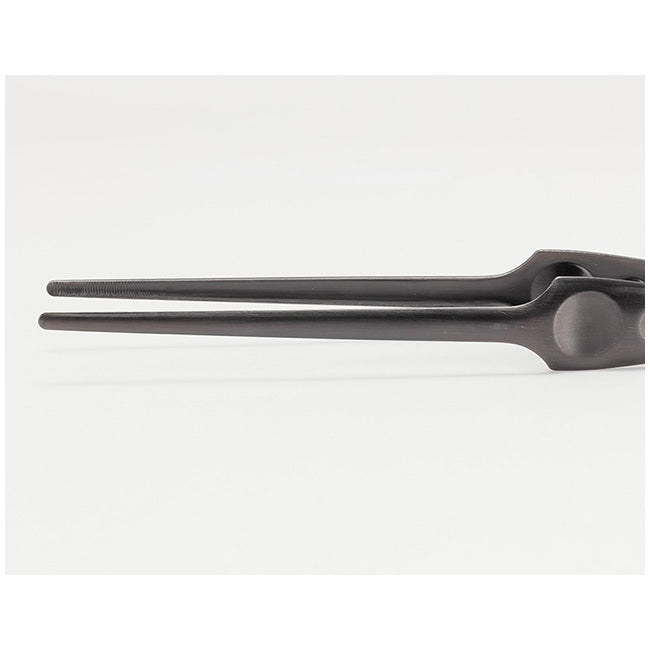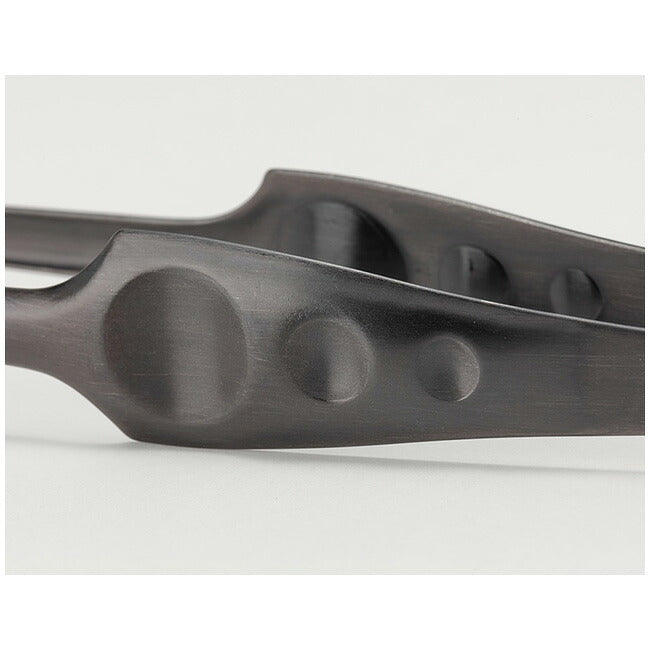焼肉専用トングのピッツ。 肉や野菜などのバーベキュー食材を手早くスムーズにつまんで返せます。 テーブルに直接おいても、先端が触れない衛生的な設計。 上下のないシンメトリーデザインで、どちら側で置いても直感的に使用できます。 【重量】 70g 【材料】 ステンレス(18-8)(黒酸化発色) |