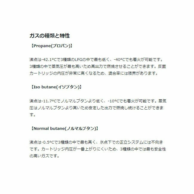 ※ガス缶などをご使用いただく商品の場合、同メーカーのものをご使用いただくことを推奨しております。 製品不良などが起こった場合、保証対象外となる場合がございます。