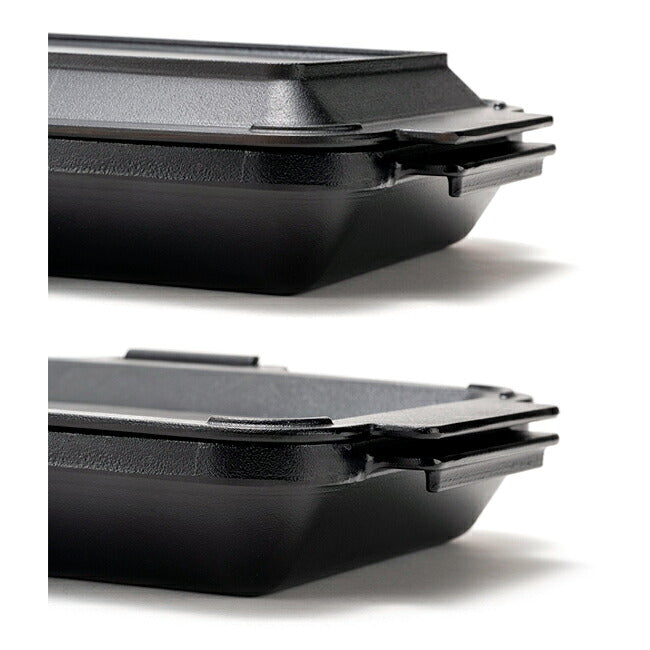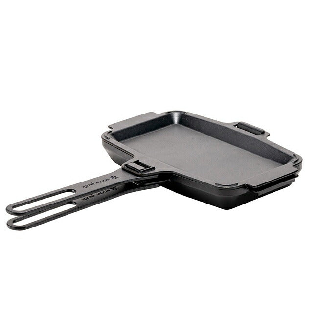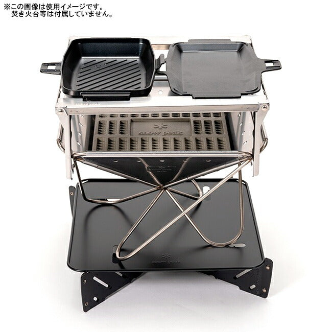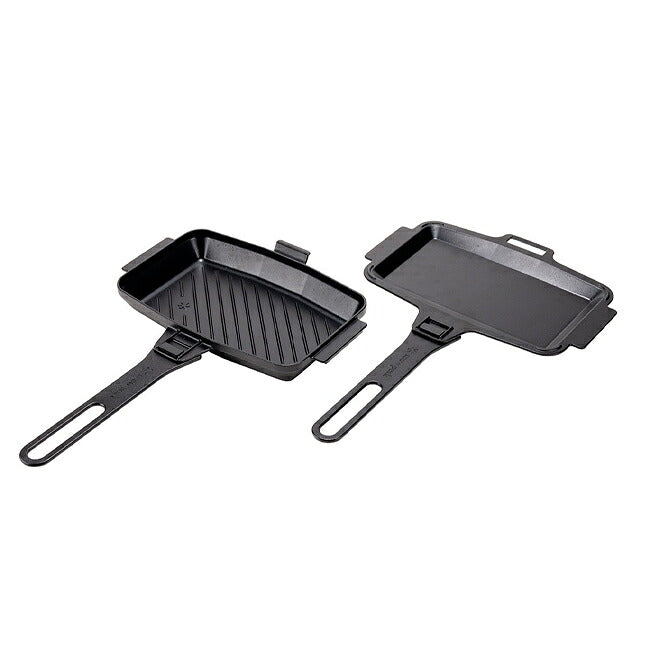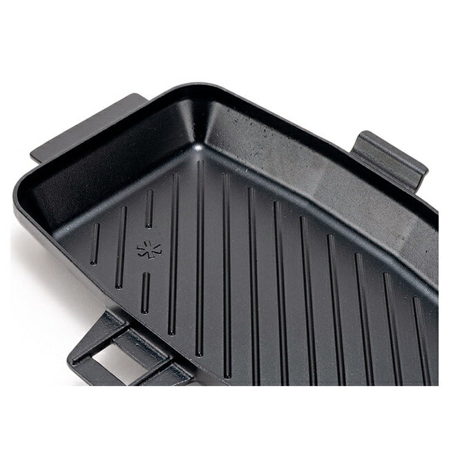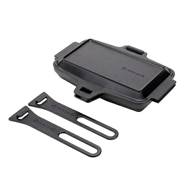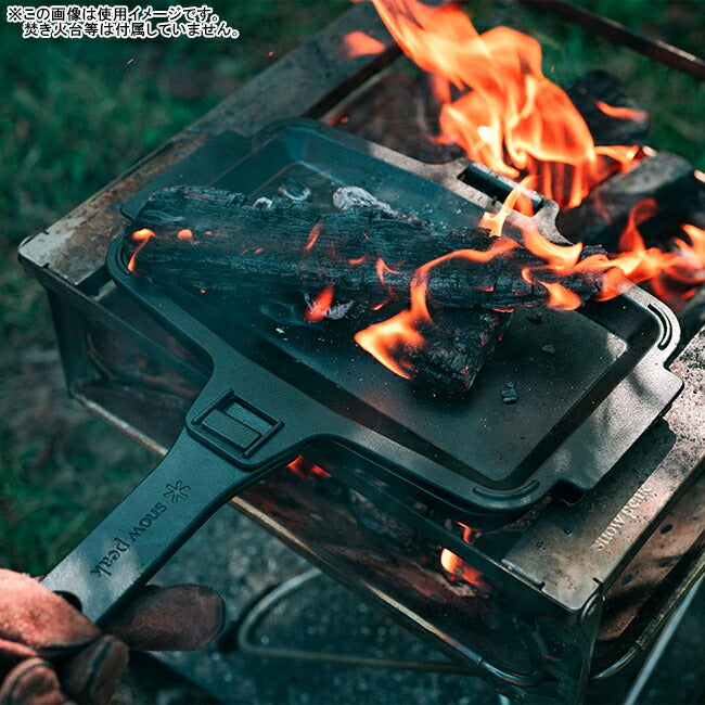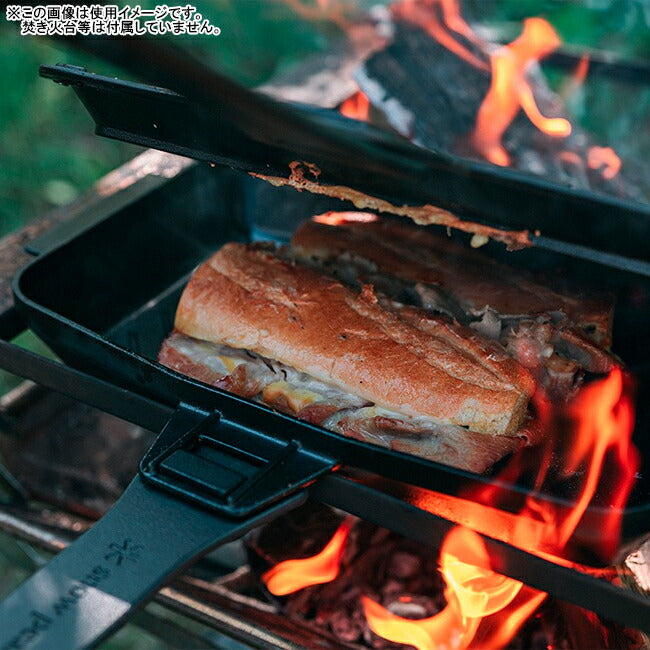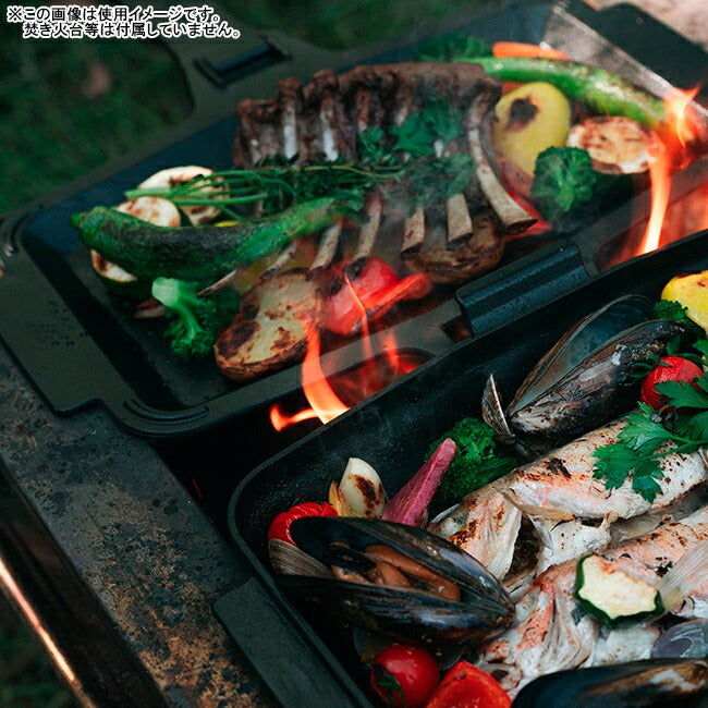 食材を選ばず、多様な調理に対応可能。 鯛などの魚も丸ごと入る長方形の鋳鉄製スキレット。 焚火や炭火で豪快に調理を楽しめる深さのある鋳鉄製スキレット。 スキレットで分厚いステーキやパエリアを作ったり、食パンを2枚並べてホットサンドを焼くことも可能。 焼く、煮る、蒸すの“1台3役”を担う調理方法の幅広さが魅力です。 独自のリッド構造により、プレートリッドをひっくり返して、ホットサンドメーカーとしての調理も可能です。 優れたハンドル構造により、脱着はもちろん、本体両側の耳に引っ掛けることで安定して本体を火から持ち上げることができます。 1つの道具で幅広い食材を美味しく調理することができるため、キャンプで現地の地産食材を直火で美味しくいただく楽しみを感じることができます。 また、他製品と相性の良いよう規格サイズに設計されているため、焚火台SRや焚火台Lのブリッジに使用することが可能で、焚火台Lのブリッジにはプレートリッドとスキレットを同時にセッティングいただけます。 焚火はもちろん、炭火やガス火、IHにも対応しています。 ※一部制限があるため、詳細は取扱説明書をご参照ください。 【重量】 5(リッド/1.9kg、スキレット/2.4kg、ハンドル/0.3kg) 【セット内容】 プレートリッド、スキレット、ハンドル×2 【材質】 ダクタイル鋳鉄(シリコン耐熱塗装) 【使用可能なガス器具】 GS-355グリルバーナー 雪峰苑、GS-430鉄板焼 エンバ—ナー ※GS-355グリルバーナー 雪峰苑を使用する際は本製品から ガスカートリッジを10cm以上離してください。 ※GS-430鉄板焼 エンバーナーを使用する際はカートリッジガードを必ず使用してください。 |