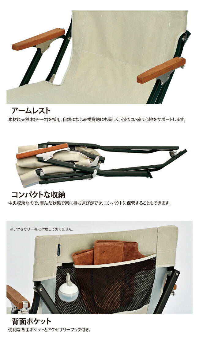 ショートタイプのフォールディングローチェア。 便利な背面ポケットとアクセサリーフック付き。 シックな色調のウッドを使用した、コンパクトな車でも収納しやすいスマートなファニチャーです。 【重量】 3.4kg(本体のみ) 【セット内容】 本体、収納ケース 【材質】 アルミニウム、ステンレス、天然木(チーク)、ポリエステル |