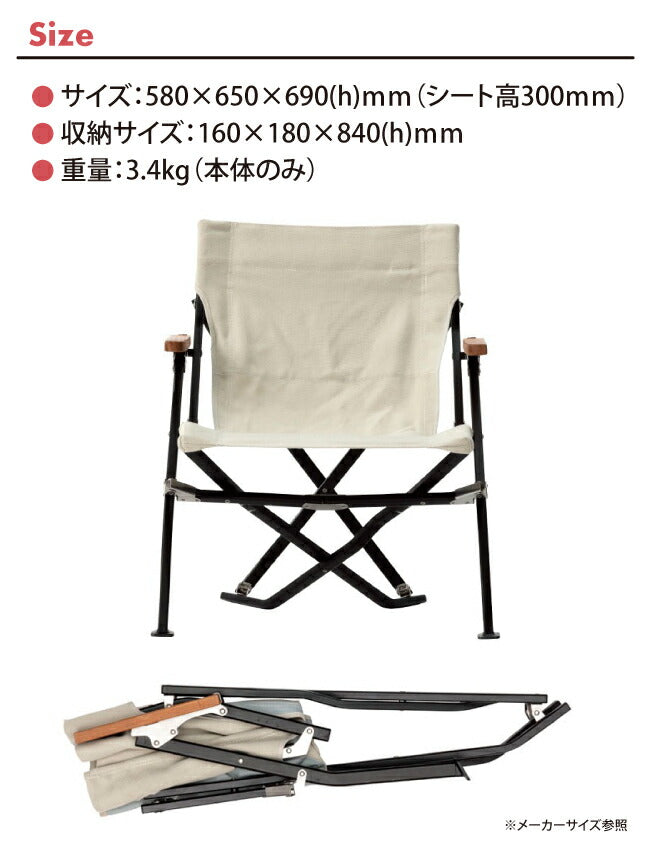 サイズ | 580×650×690(h)mm(シート高300m) 【収納サイズ】 160×180×840(h)mm ※メーカーサイズ参照 |