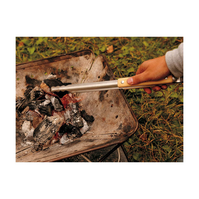 グリップ部分にビーチ材を装着した、手になじみ扱いやすい火ばさみです。 軽い力で木炭や薪を挟めます。【重量】 200g 【材質】 本体:ステンレス グリップ:ビーチ材 |