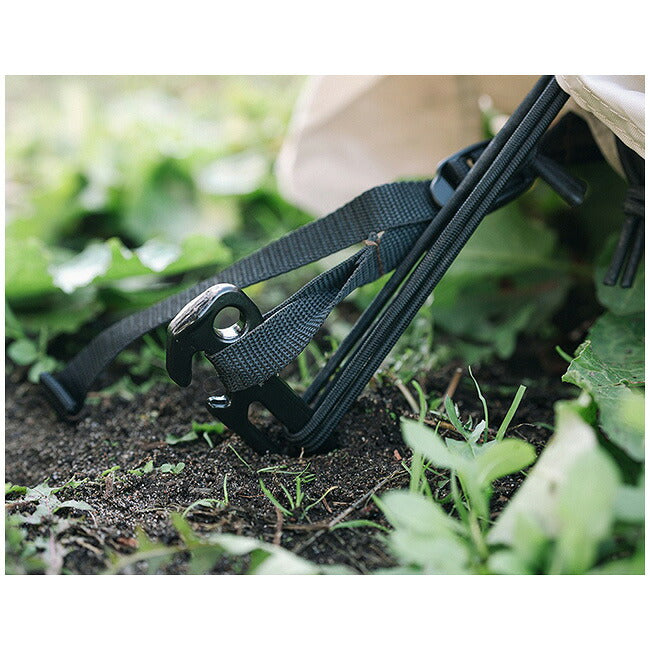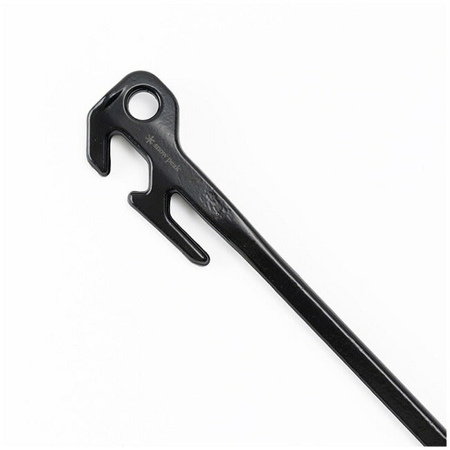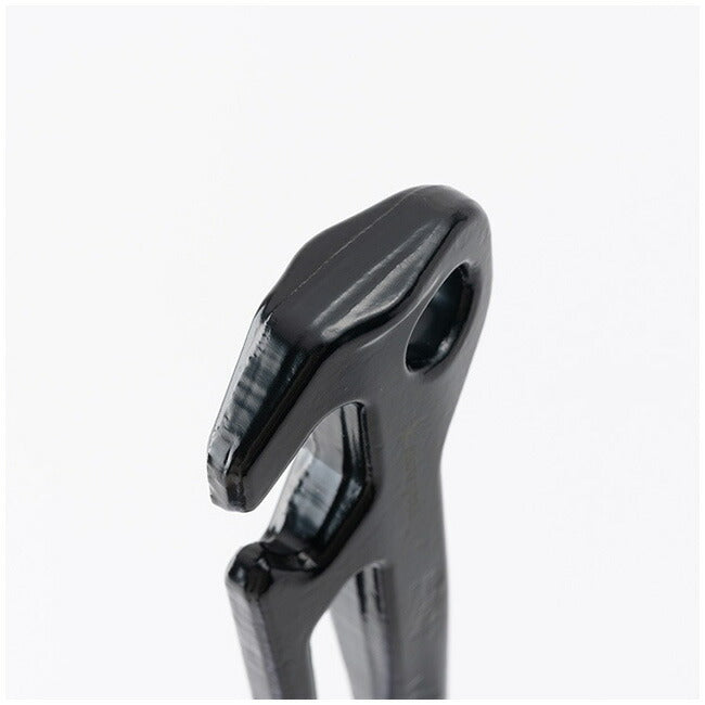 設営・撤収時のストレスを軽減。 【特徴】 1995年の発売以来、圧倒的支持を集める「ソリッドステーク」で培った知見と技術を活かして誕生した鍛造ペグ。 地面に打ち込みやすく、捻ることで抜きやすくなる三角形状を採用しています。 ハンマーのフックをかける穴が地面に打ち込まれた際に上側にあることで、抜く際の負担を軽減してくれます。 また天面の面積が広く、打ち損じが起きにくい形状。 さらに2か所に設けたフックも特長で、地面に深く差し込んだ後でも、インナールーム等のゴムやロープを上側のフックに引っかけることができるので、ペグの打ち直しを必要としません。 打ち込む際の適正角度である45度を、目視で確認しやすい形状にデザインしています。 【重量】 584g 【材質】 スチール(S55C、カチオン黒色電着塗装) |