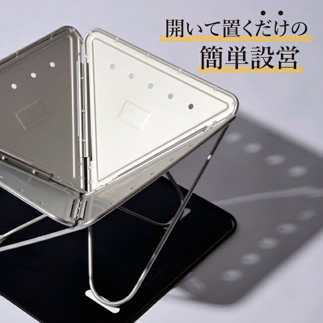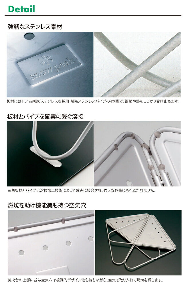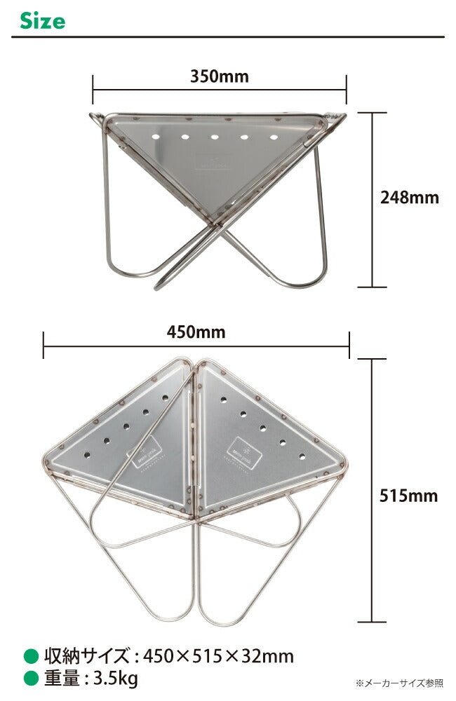 snowpeak/スノーピーク/焚火台 Mサイズ:350×350×248mm 収納サイズ:450×515×32mm 重量:3.5kgLサイズよりひと回りコンパクトなタイプ。オプションも充実していて、様々な焚火料理が可能です。子どもに火を教えるきっかけとしても、焚火台は最適です。 材質:本体/ステンレス、ケース/ナイロン |
