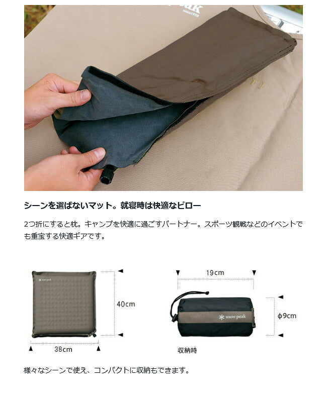 さらに快適な睡眠を叶えるマット&ピロー。 どこでも使えるマットですが、就寝時はピローとしても使えます。 キャンプはもちろん、旅行やスポーツ観戦などに大活躍する、コストパフォーマンス最高の便利グッズです。 【重量】 140g 【セット内容】 本体、収納ケース、リペアキット 【材質】 表地:75Dポリエステル 裏:75Dポリエステルノンスリップ加工 インナー:TPUフォーム バルブ:ABS樹脂 |