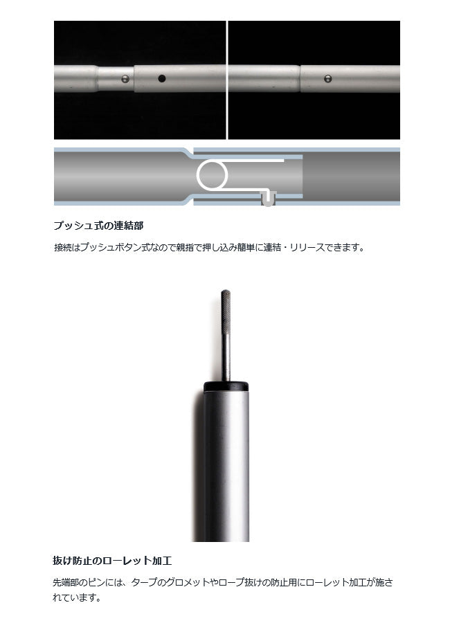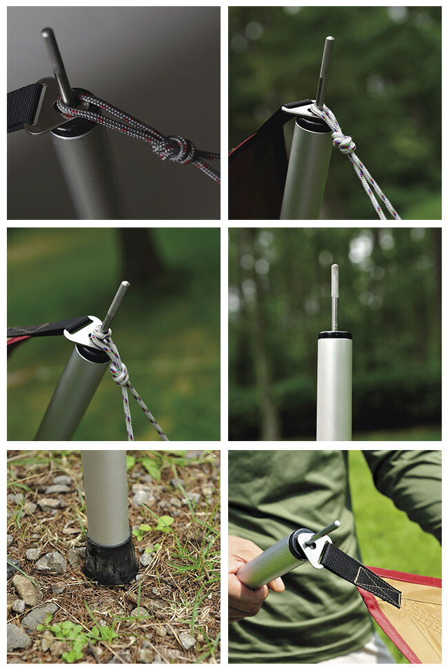 史上最強のタープポール。 重量:0.9kg 材質:アルミニウム合金(アルマイト加工) |