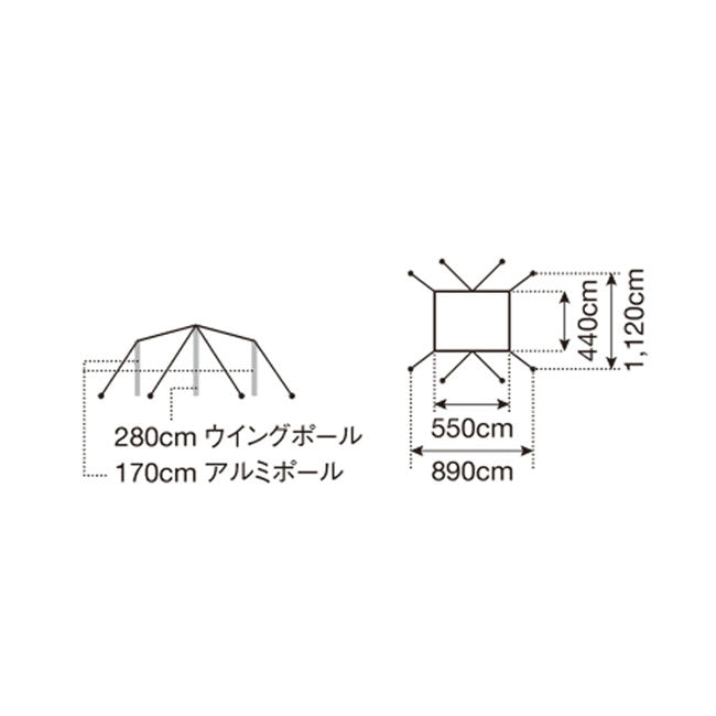 サイズ | サイズ:890×1,120cm 収納サイズ:80×17×22(h)cm ※メーカーサイズ参照 |