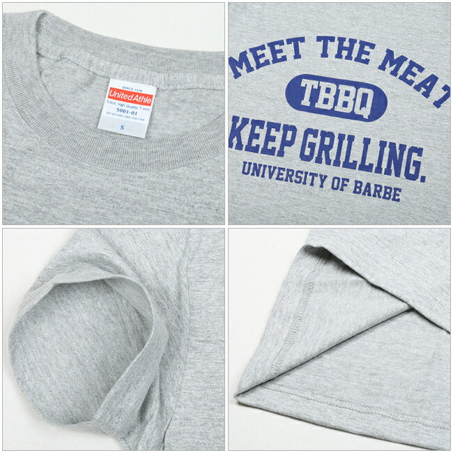 たけだバーベキューのTシャツ第2弾 たけだの母校である「BARBE UNIVERSITY」のカレッジTシャツです。 その時の卒論のテーマ「MEET THE MEAT」を大きくあしらってみました。 【素材】綿100% |