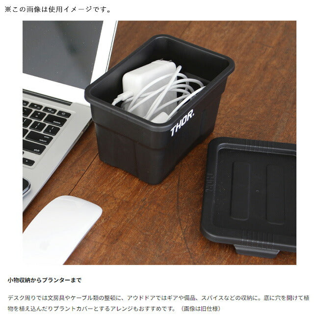 細かな物の収納に使い勝手のいいコンパクトなトートボックス。 ステーショナリーや工具、アウドドアでは細かなギアやスパイスの収納にもお使いいただけます。 THOR LARGE TOTE 22Lの底面に4個、2段の最大8個収納も可能。 細々したものをまとめるインナーボックスとしての使用もおすすめです。 ※本製品は本体に多少のキズやばり、プリント擦れなどがございますが予めご了承下さい。 ※フタ付き 【素材】 ポリプロピレン |