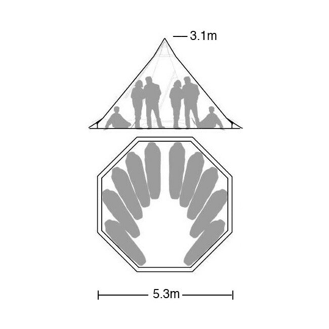 北欧生まれのティピータイプの大型テントです。 センターポール1本だけのシンプルな構造のため、組み立てはわずか数分で済みます。 形状は8角錘と円錐に近いため風に煽られることもありません。 このオニキスCPはテンティピテントのベーシックモデル。 ボディの素材はコットンとポリエステルの混紡素材Cotpolmex Comfortを用いているためキャンバス地のような風合いです。 この素材は一般的なポリエステル素材に比べ「呼吸」するため結露は最小、インナーテントは必要ないほどです。 内部からも微調整が可能なトップベンチレーションを開ければ、内部で焚き火を楽しむことも可能です。 【就寝可能人数】 8〜10人 【着座可能人数】 16〜20人 【付属品】 ・テント本体(生地) ・分割可能なアルミポール(サック付き) ・ペグ ・ストームコード ・ペグダウンの位置を決めるテンプレート ・コンプレッション機能付き収納バッグ 【素材】 コットン・ポリエステル混紡素材 |