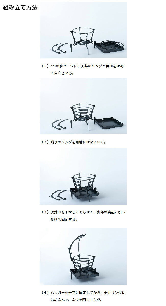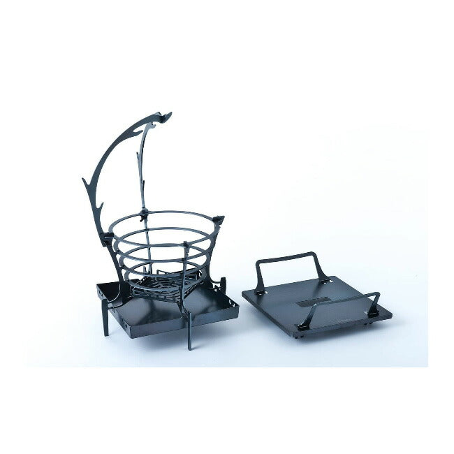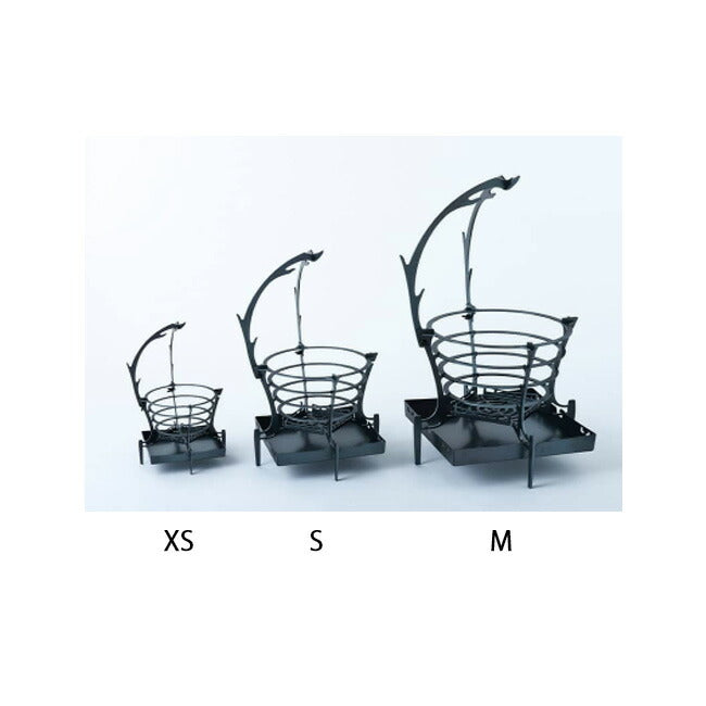 森に水辺にフィットする野性的シルエット。丈夫で使うほどに味わいが出る鉄の質感。火が燃えやすい機能デザイン。 時間に応じて変化する炎が美しく見える設計。空気をよく通す計算された燃焼効率。なめらかに磨き仕上げた職人魂。 さまざまなシーンを想定したサイズ展開。各サイズに応じたコンパクトな収納。ソロキャンプから、ファミリーキャンプまで。 ドライバーは不要。カチャカチャと小気味よい感触でタノシメタル。 重量:1.2kg 材質:鉄 セット内容:本体、薪台 推奨薪サイズ:小枝 |